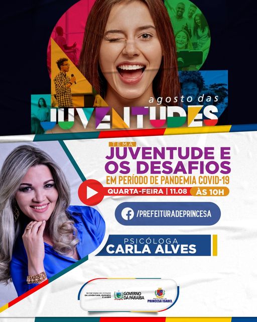 A live com o tema Juventude e os Desafios em Período de Pandemia Covid-19, integra a grade de programação estadual do Mês da Juventude, e é uma parceria com a SEJEL-PB.
