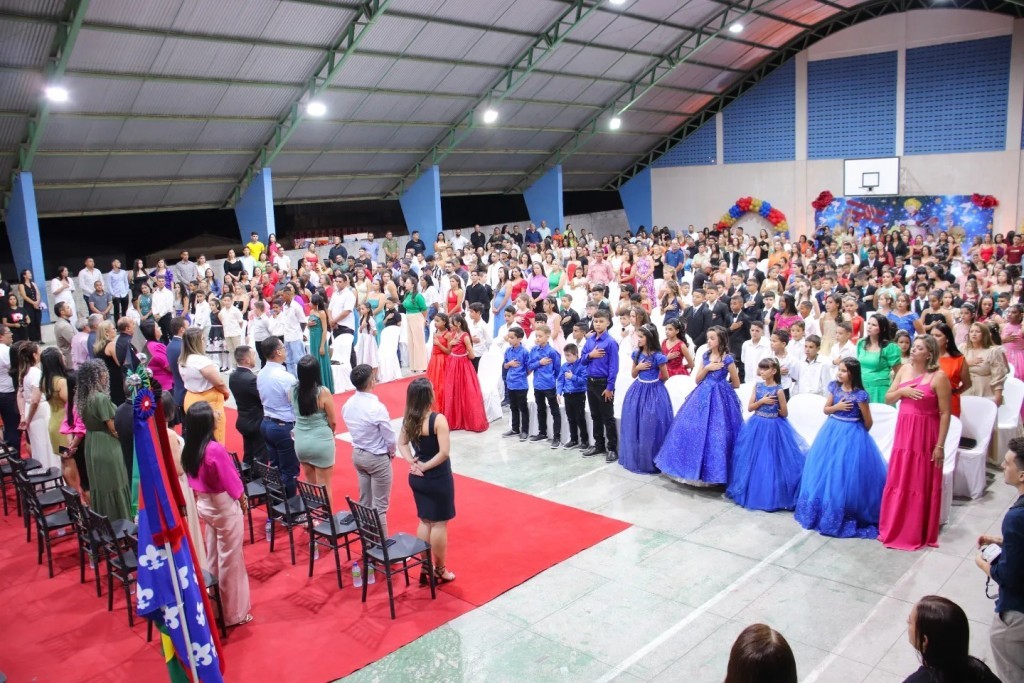 Os alunos concluintes dos 5º anos da Rede municipal de Educação encerraram o ano letivo e a etapa dos anos iniciais do ensino fundamental em cerimônia realizada na quadra da escola Carlos Alberto Medeiros Duarte Sobreira, na noite da última quinta-feira (14).