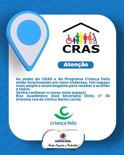 As sedes do CRAS e do Criança Feliz agora estão em novo endereço.