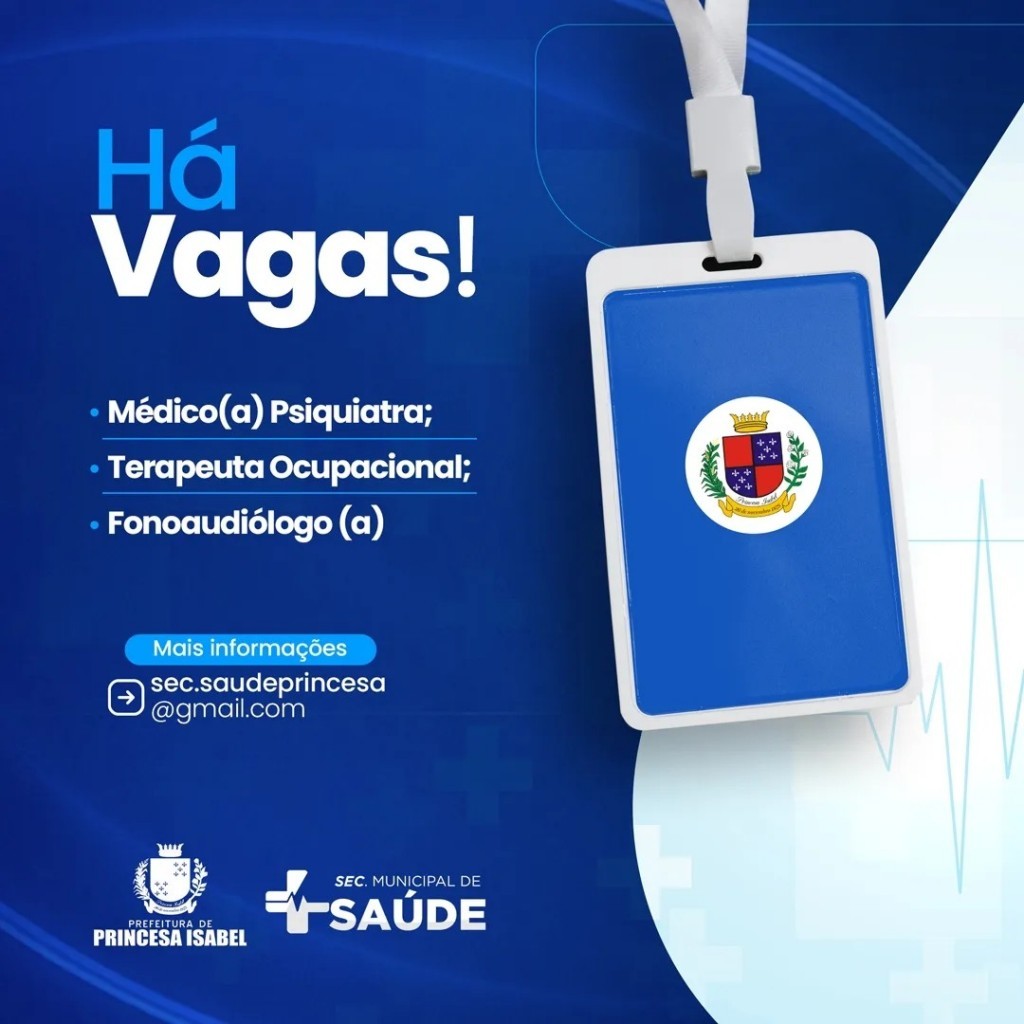 Atenção! A Prefeitura de Princesa Isabel está com vagas abertas para os seguintes profissionais