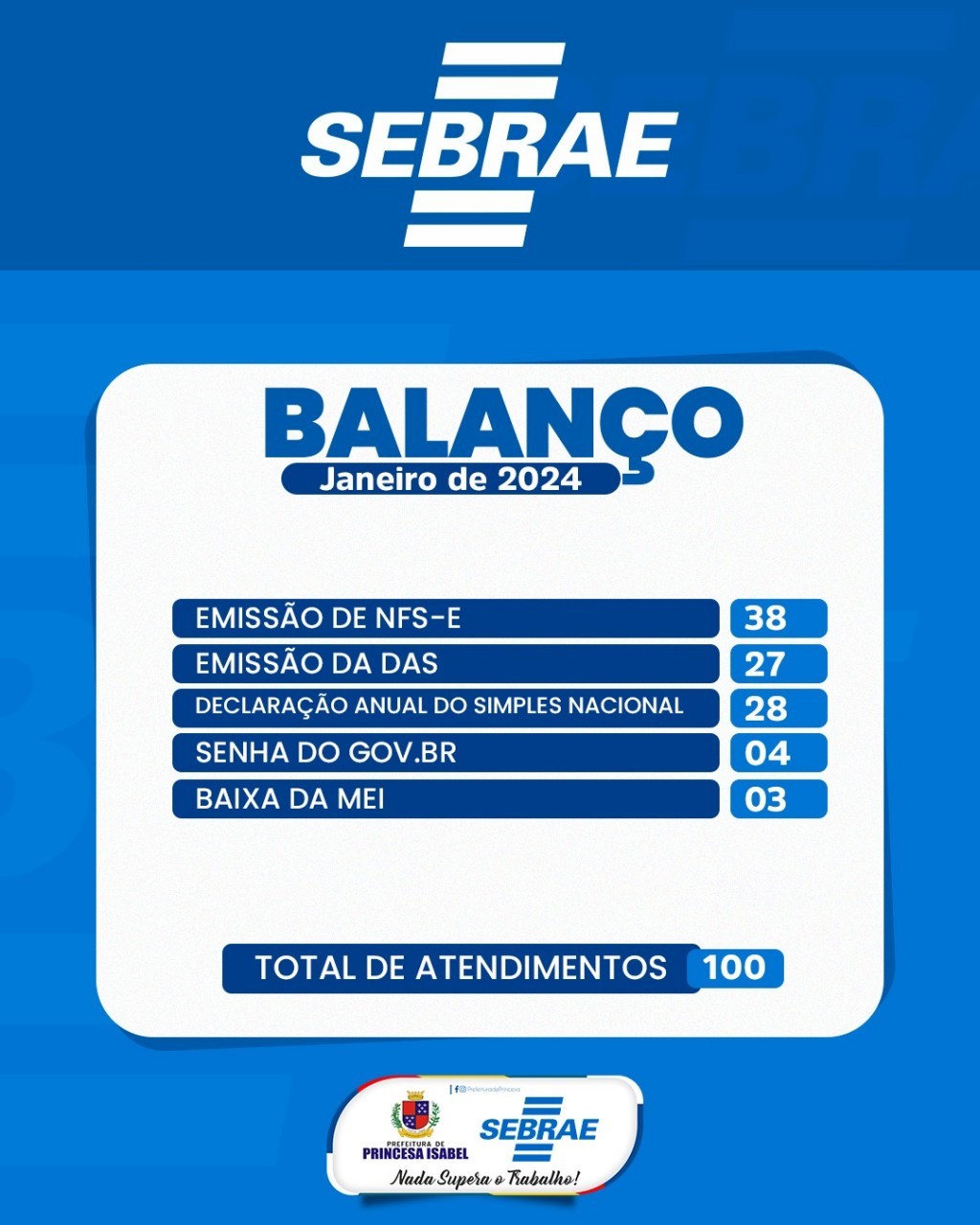 Confira os atendimentos do mês de janeiro do PAS- Posto de Atendimento do Sebrae.