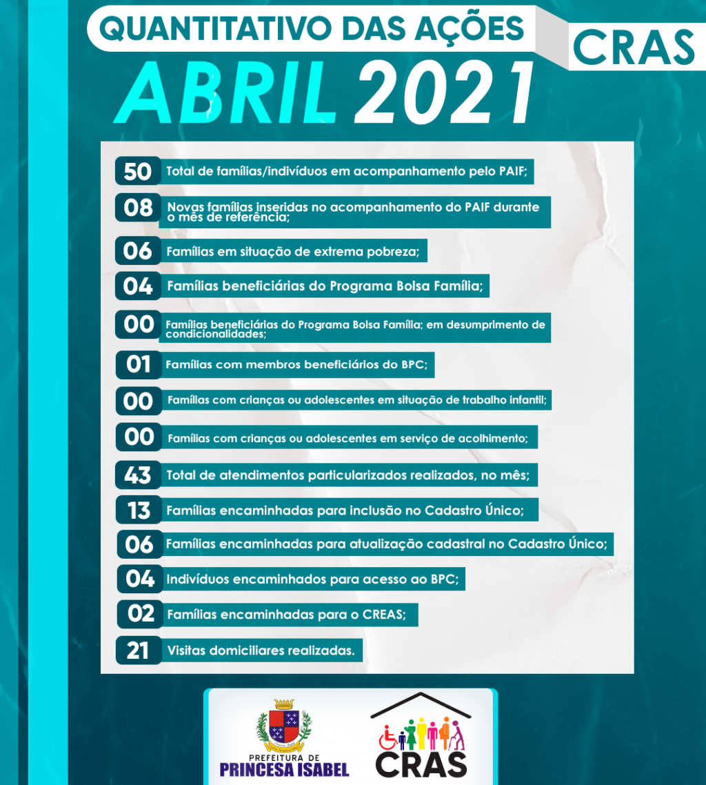 Balanço e Prestação de Contas da Secretária de Assistência Social em Princesa Isabel, referente ao mês de abril de 2021.