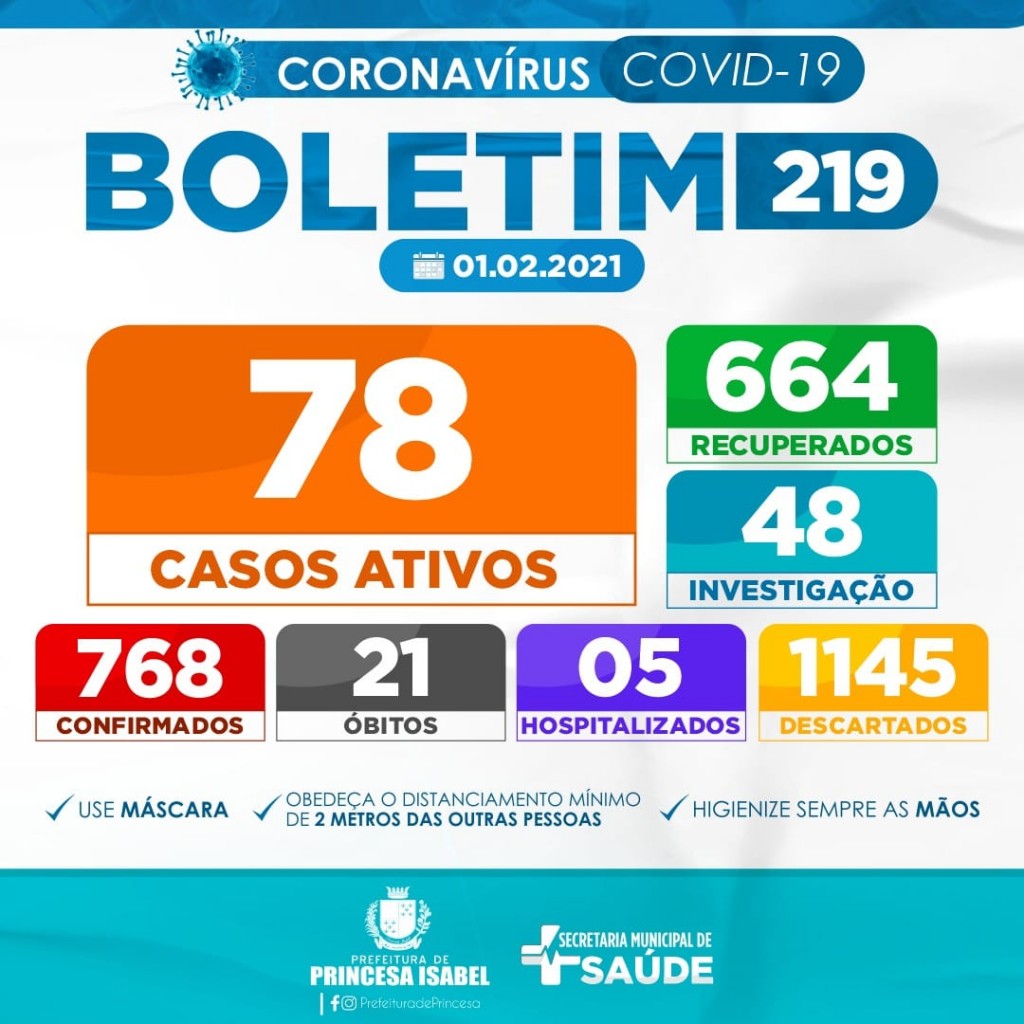 6. O uso de máscaras é obrigatório em todo o município de Princesa Isabel, conforme decreto editado e publicado na íntegra na página oficial do governo municipal e redes sociais da prefeitura.