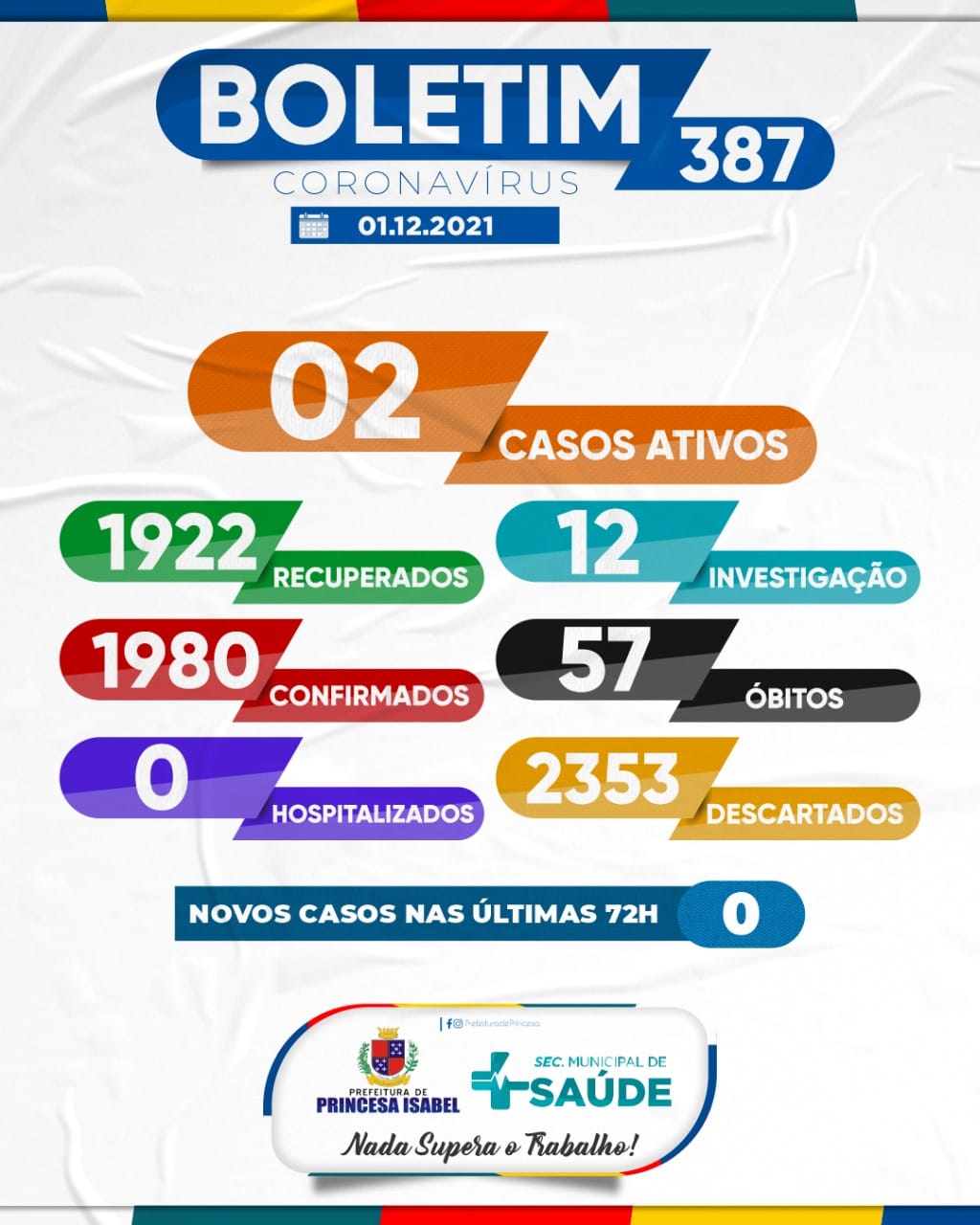 O Comitê Gestor da Crise COVID-19, em Princesa Isabel, informa: