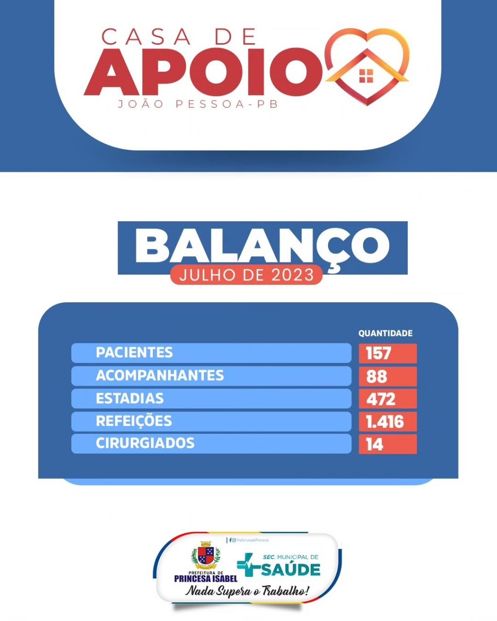 Somente no mês de julho de 2023 foram realizados 245 acolhimentos, dos quais, 14 pacientes que passaram por algum procedimento cirúrgico; 472 estadias e 1.416 refeições, incluindo café, almoço e jantar, entre pacientes, acompanhantes e motoristas.