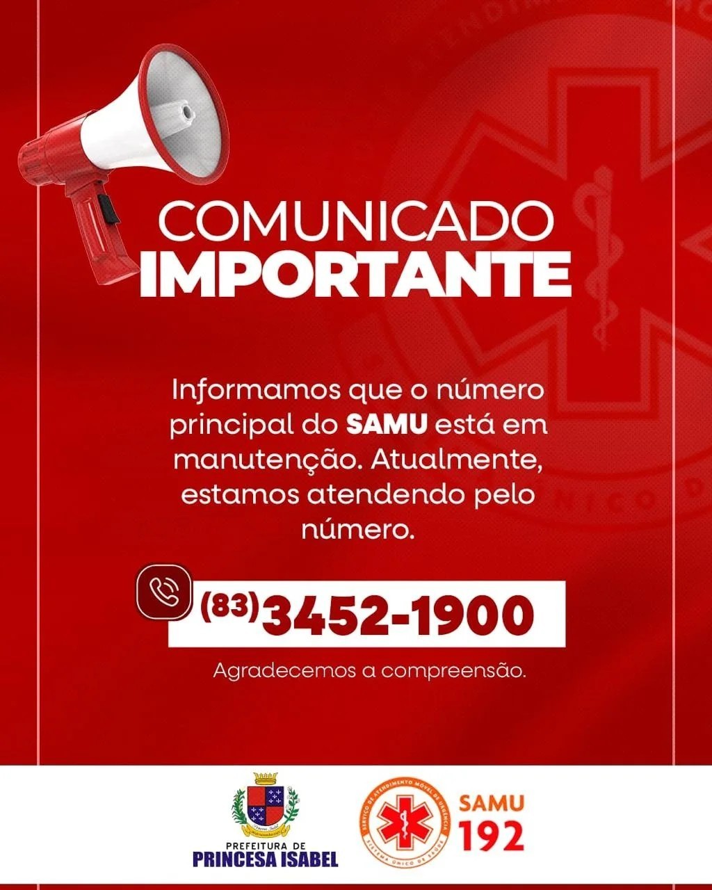 Comunicado importante do SAMU.