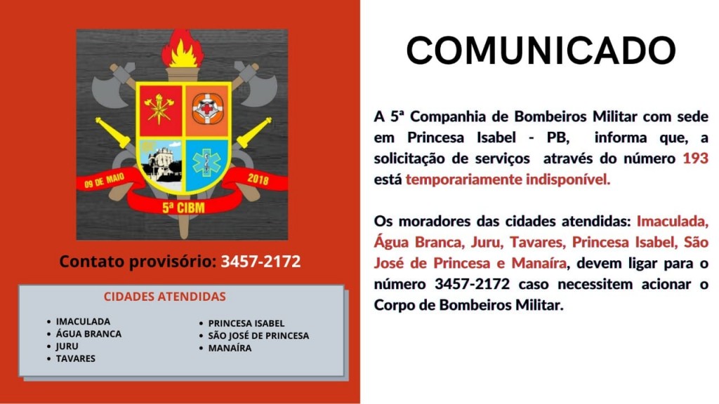 Comunicado importante da 5a CIBM da Paraíba em Princesa Isabel!