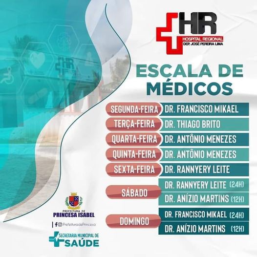 Confira a escala semanal de médicos que atua no Hospital Regional Deputado José Pereira Lima.