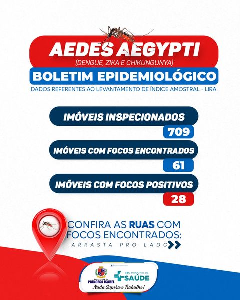 Confira o Boletim Epidemiológico do Aedes Aegypti no município. Os dados são referentes ao último LIRA.
