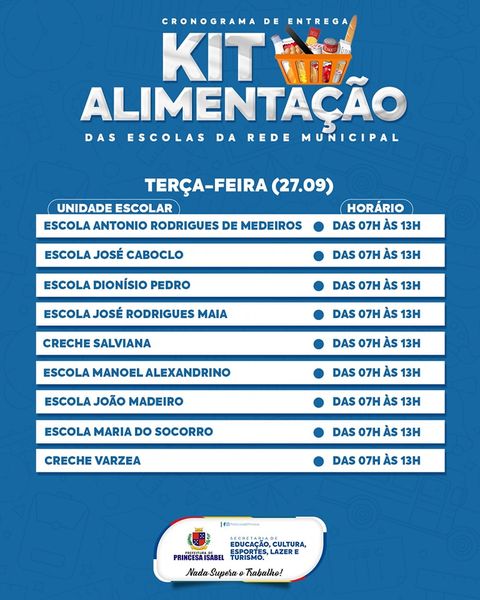 Cronograma de Entrega de Cestas Básicas aos Alunos da Rede Municipal de Educação em Princesa Isabel