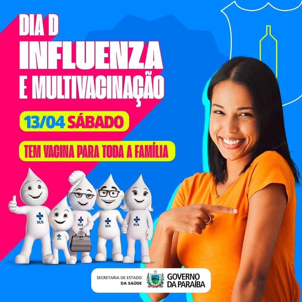 Neste sábado (13) acontece mais um Dia D de vacinação contra a gripe em toda a Paraíba. Procure sua unidade básica de saúde e proteja você e quem você ama!