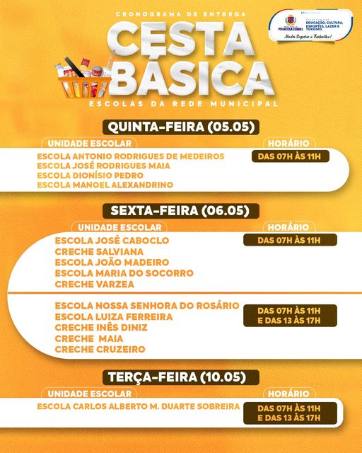 Distribuição de cestas básicas aos alunos da Rede Municipal de Educação inicia nesta quinta-feira (05).