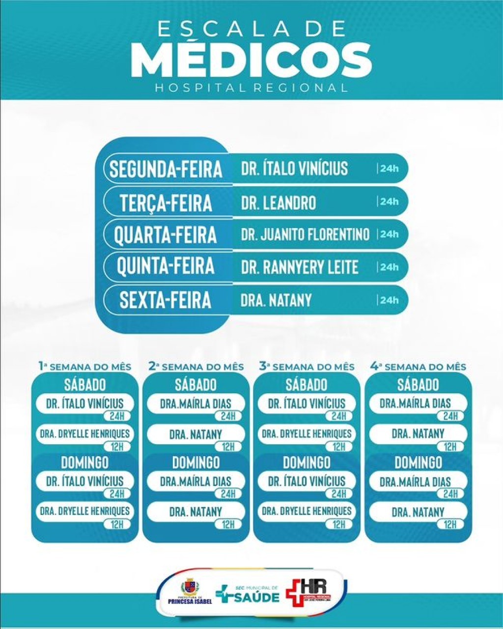 Confira a escala médica do Hospital Regional Deputado José Pereira Lima!