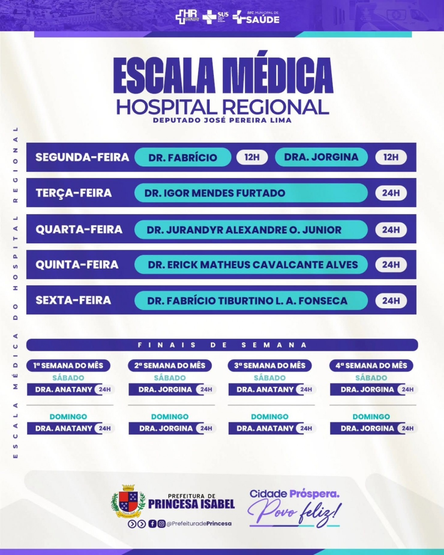Confira a escala médica do Hospital Regional Deputado José Pereira Lima.
