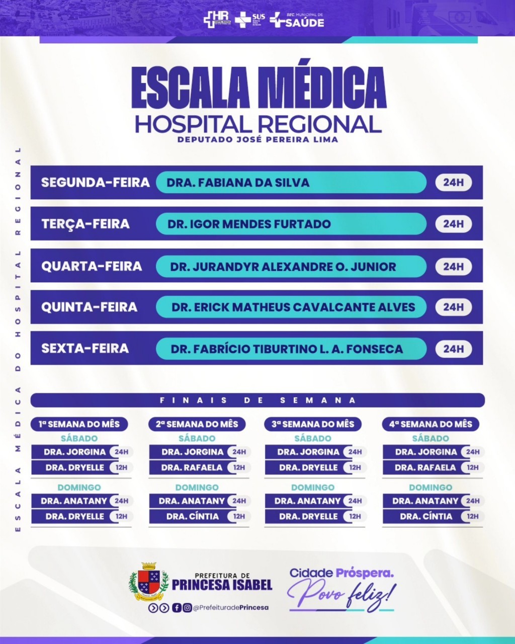 Confira a escala médica do Hospital Regional Deputado José Pereira Lima!