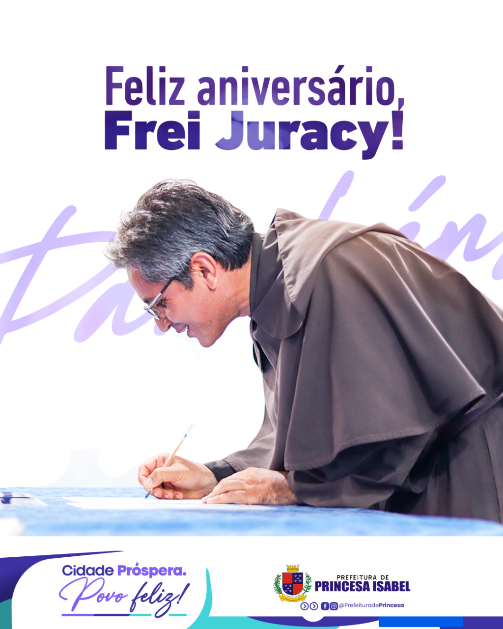 A Prefeitura de Princesa Isabel felicita o pároco Frei Juracy Barbosa por mais um ano de vida! Que esta data especial seja repleta de razões para sorrir, saúde e felicidade. Agradecemos sua dedicação e compromisso com a nossa comunidade. Deus continue sempre guiando-o com fé e sabedoria. Que Ele continue abençoando sua jornada e iluminando seus passos!