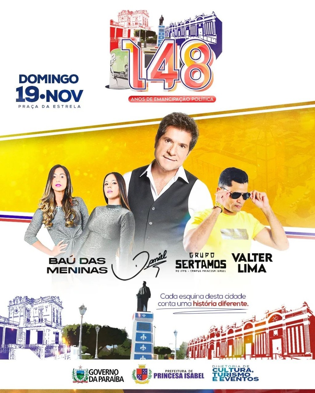 Os 148 anos de emancipação política de Princesa Isabel tem mais atrações artísticas! Na grade de programação entram também Valter Lima e Baú das Meninas!