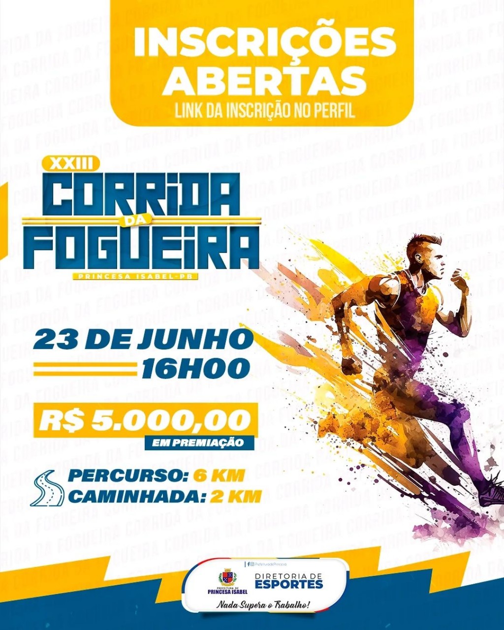 Já estão abertas as inscrições para a XXIII Corrida da Fogueira. Confira o link na nossa bio e garanta sua vaga!