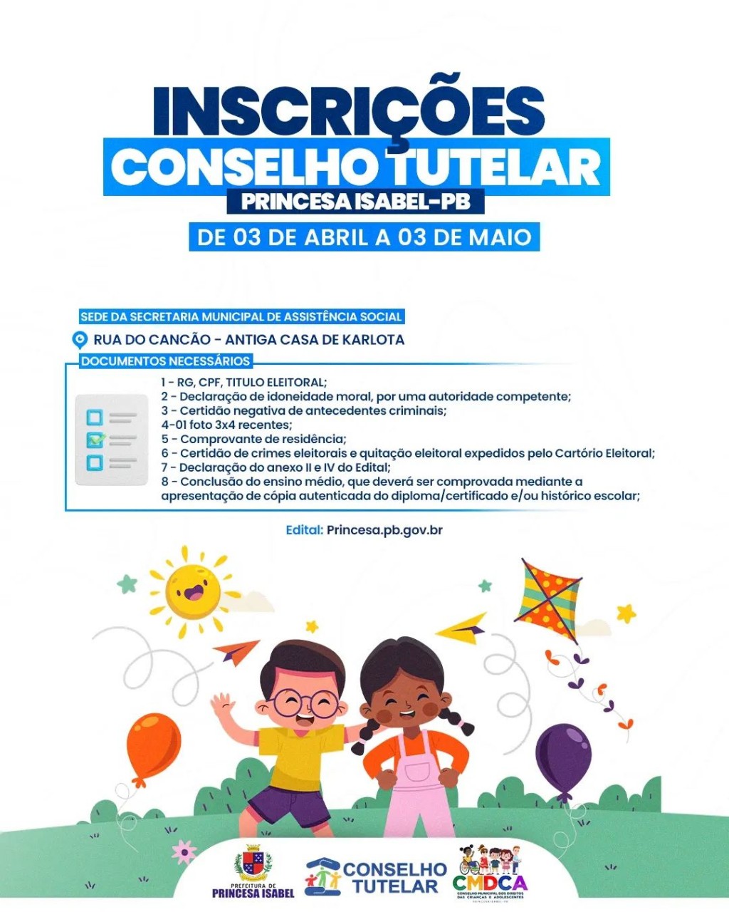 Inscrições abertas.Confira o edital completo em Princesa.pb.gov.br