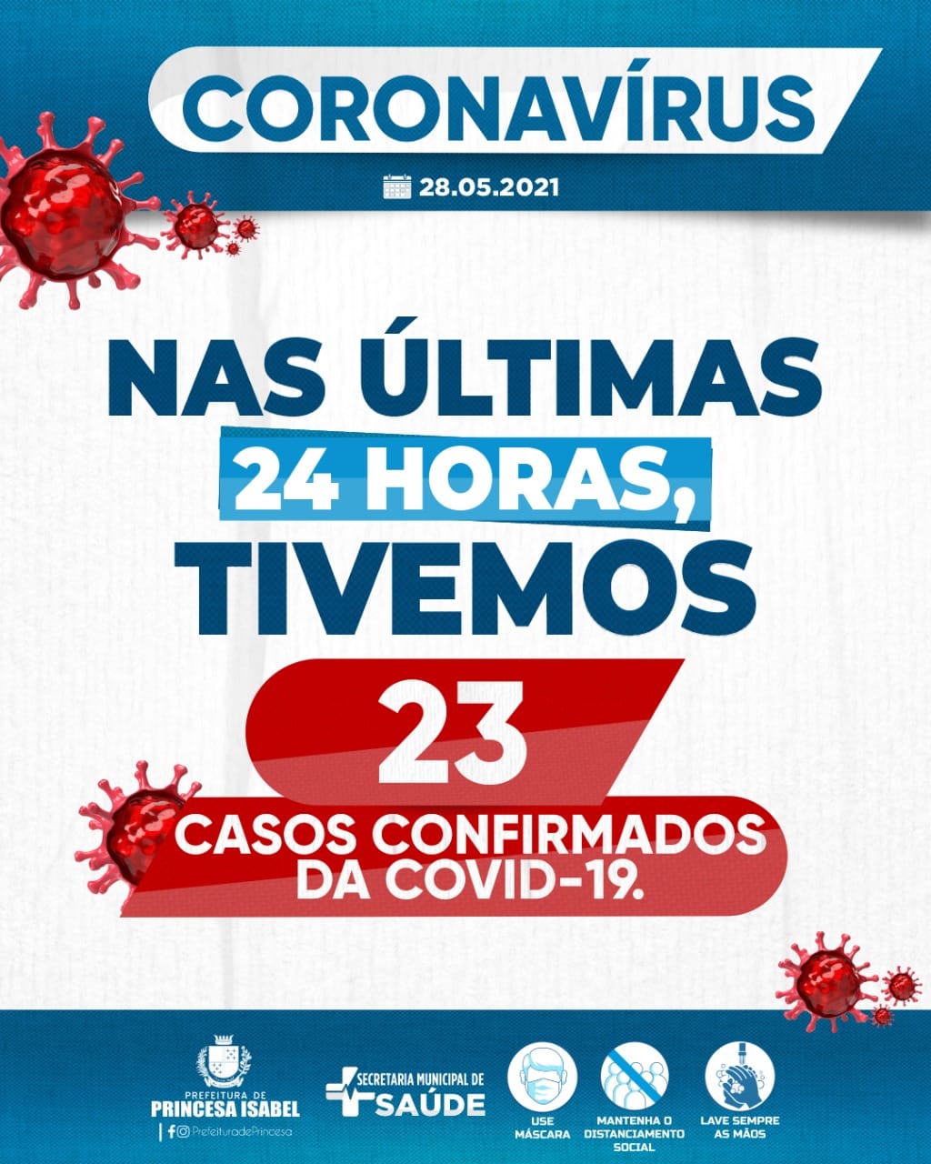 NAS ÚLTIMAS 24 HORAS, TIVEMOS 23 CASOS CONFIRMADOS DA COVID-19.