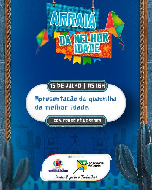 Nesta sexta-feira, 15, acontecerá o Arraiá da Melhor Idade, a partir das 18h, na Praça Miron Maia. E você é o nosso convidado especial!