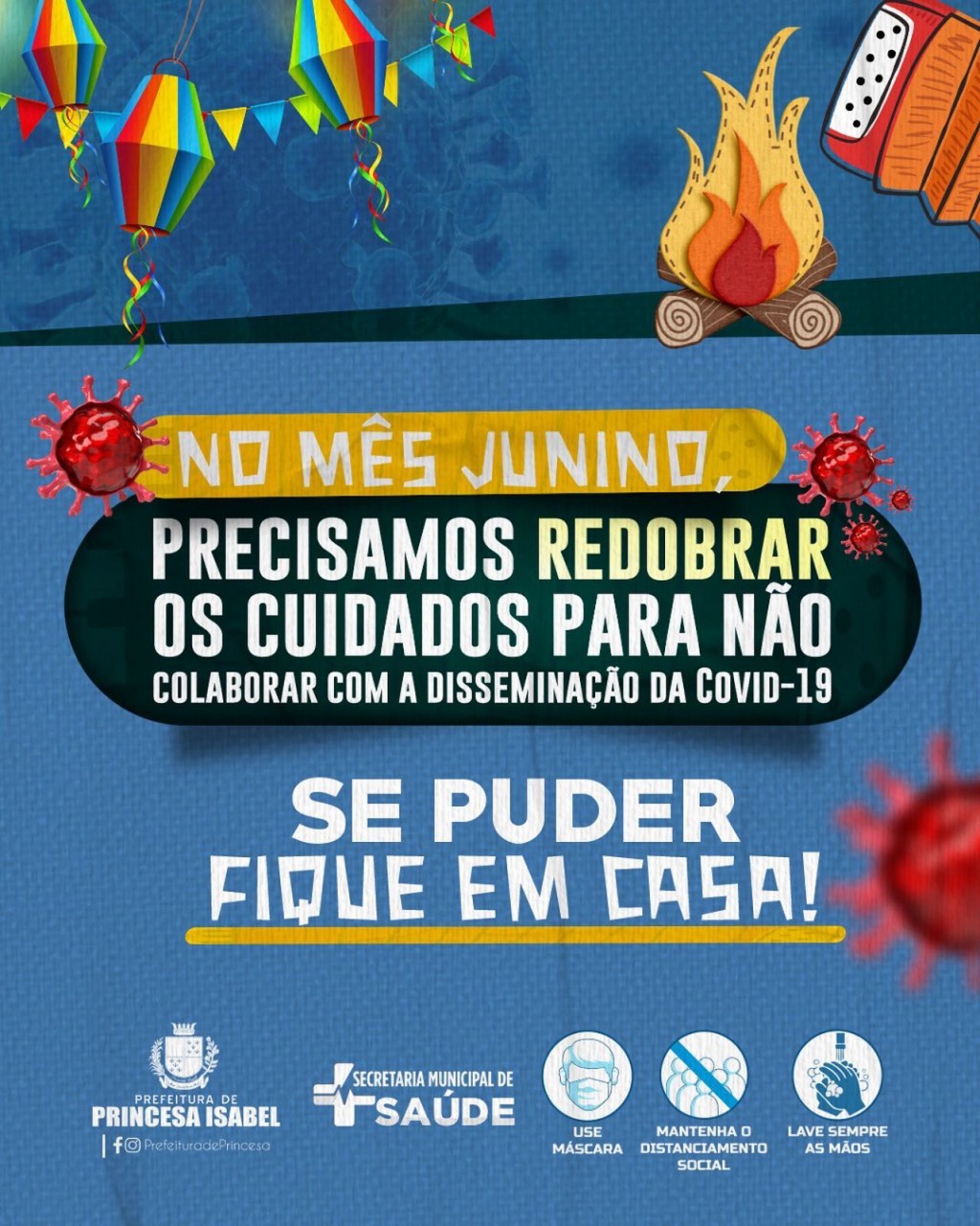 NO MÊS DE JUNINO, PRECISAMOS REDOBRAR OS CUIDADOS PARA NÃO COLOBORAR COM A DISSEMINAÇÃO DA COVID-19