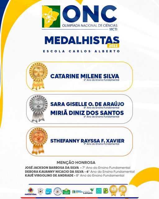 Parabenizamos os nossos estudantes pelo destaque na Olimpíada Nacional de Ciências. Os esforços e a dedicação de vocês serão recompensados na garantia de um futuro promissor.