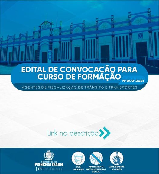 O Governo Municipal de Princesa Isabel convoca os candidatos classificados para o cargo de Agente de Fiscalização de Trânsito e Transportes para participar do curso de formação 002/2021.