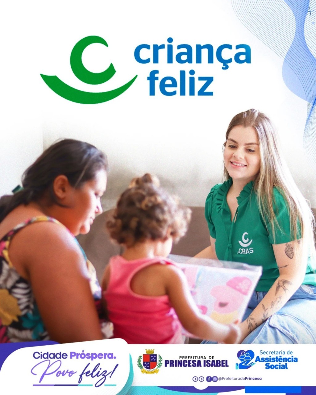 O Criança Feliz é um programa federal que meio de visitas domiciliares realizadas por profissionais capacitados fortalece vínculos familiares, promove práticas que favorecem o desenvolvimento saudável e garantem que famílias recebam o apoio necessário para superar desafios. Em Princesa Isabel, o programa atende cerca de 300 famílias com crianças na primeira infância (0 – 6 anos de idade) e tem sede administrativa a Rua Acadêmico José Severiano, Centro.