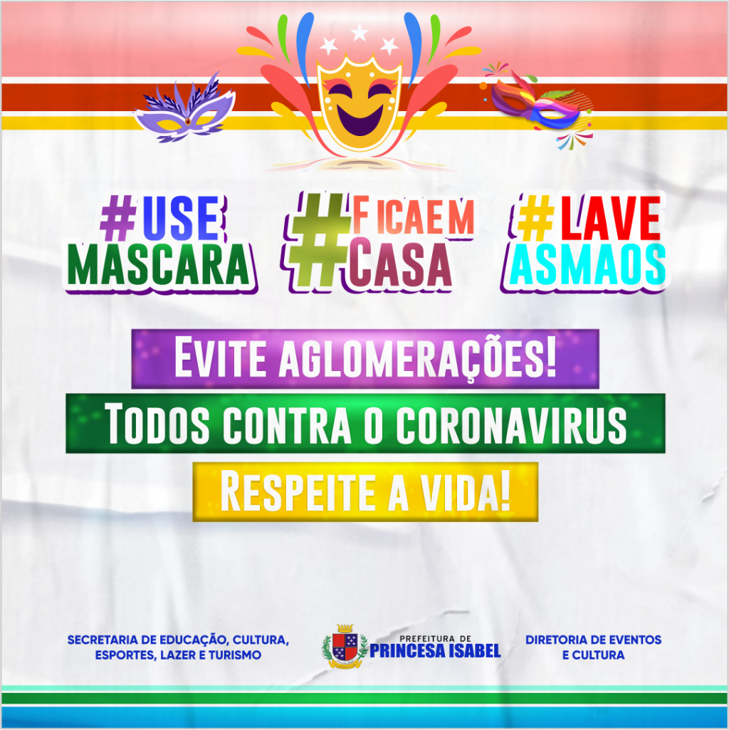 Este ano não tem festa, não tem bloco! É uma medida de combate à disseminação do Coronavírus. Evite aglomerações. Evite festas clandestinas. A vacina chegou, mas a pandemia não acabou!