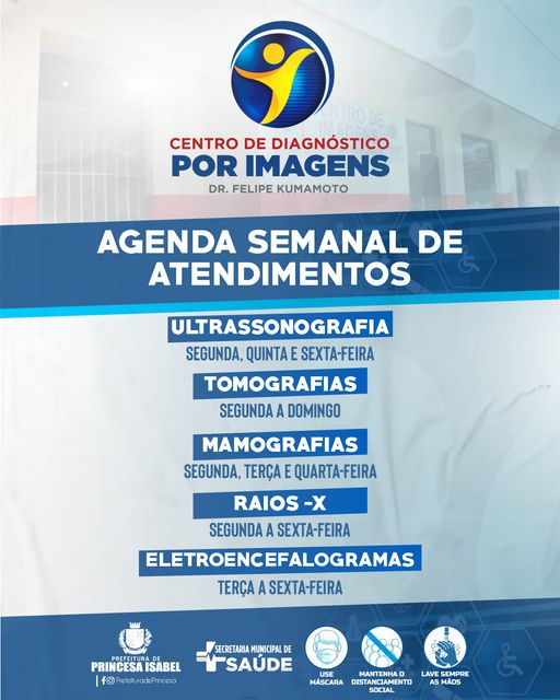 Confira a agenda semanal de atendimentos do Centro de Diagnóstico por imagens Dr. Felipe Kumamoto