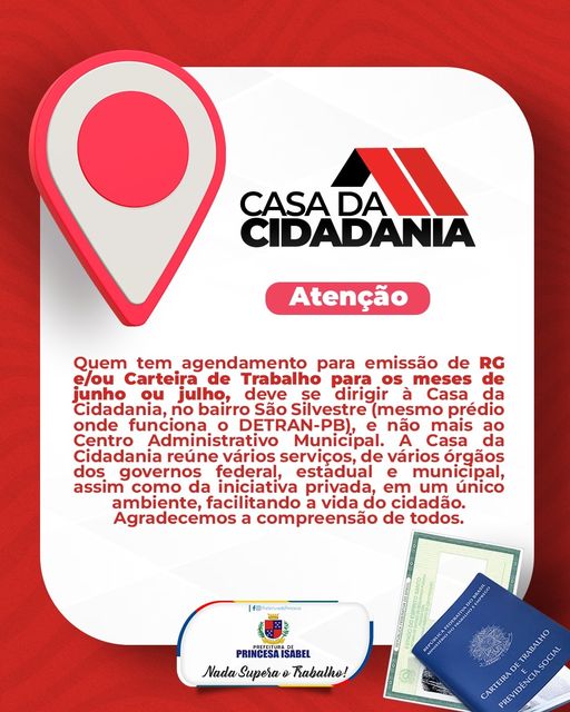 Emissão de RG ou Carteira de Trabalho agora é na Casa da Cidadania.