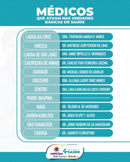 Confira os médicos que atuam nas nossas Unidades Básicas de Saúde.