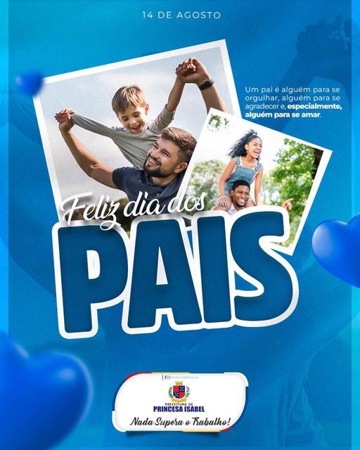 O Governo Municipal de Princesa Isabel parabeniza todos os pais pelo seu dia. Que Deus os ilumine e conduza todas as famílias princesenses. Feliz dia dos pais!
