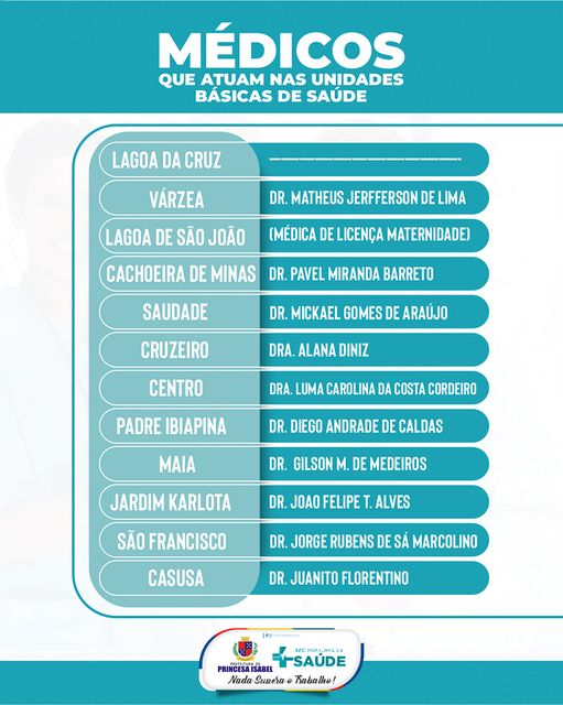 Confira os médicos que atuam nas nossas Unidades Básicas de Saúde!