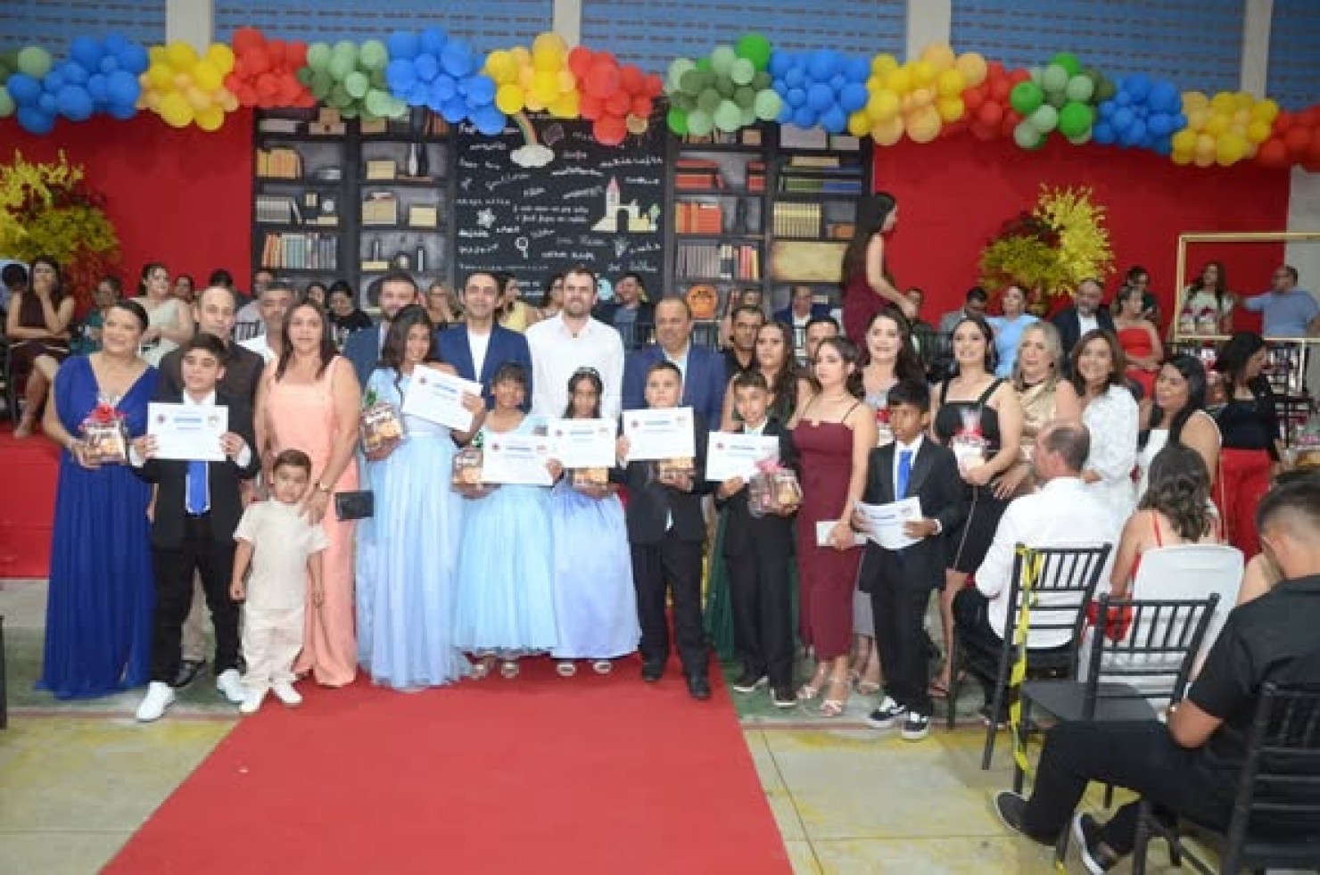 Durante a cerimônia, alguns alunos foram laureados em reconhecimento ao destaque acadêmico ao longo dos anos iniciais do Ensino Fundamental, simbolizando o compromisso com o estudo, a dedicação e o esforço demonstrados durante a trajetória escolar.