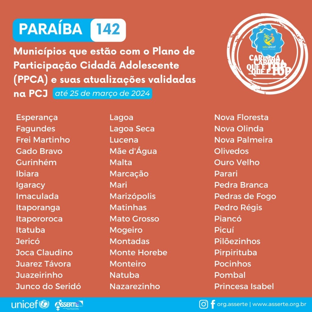 Estamos com o Plano de Participação Cidadã Adolescente e suas atualizações validadas na PCJ. Mais uma meta atingida rumo à reconquista do Selo Unicef.