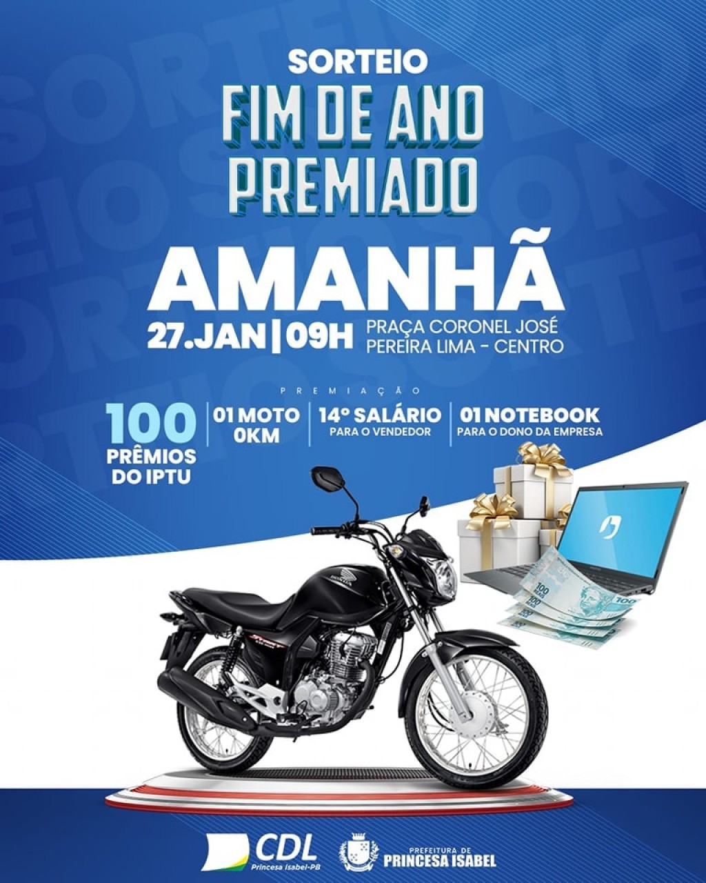Acontece, neste sábado (27), o sorteio Fim de ano Premiado, em parceria com a CDL. Acompanhe conosco, a partir das 9h da manhã, e confira os mais de 100 ganhadores.