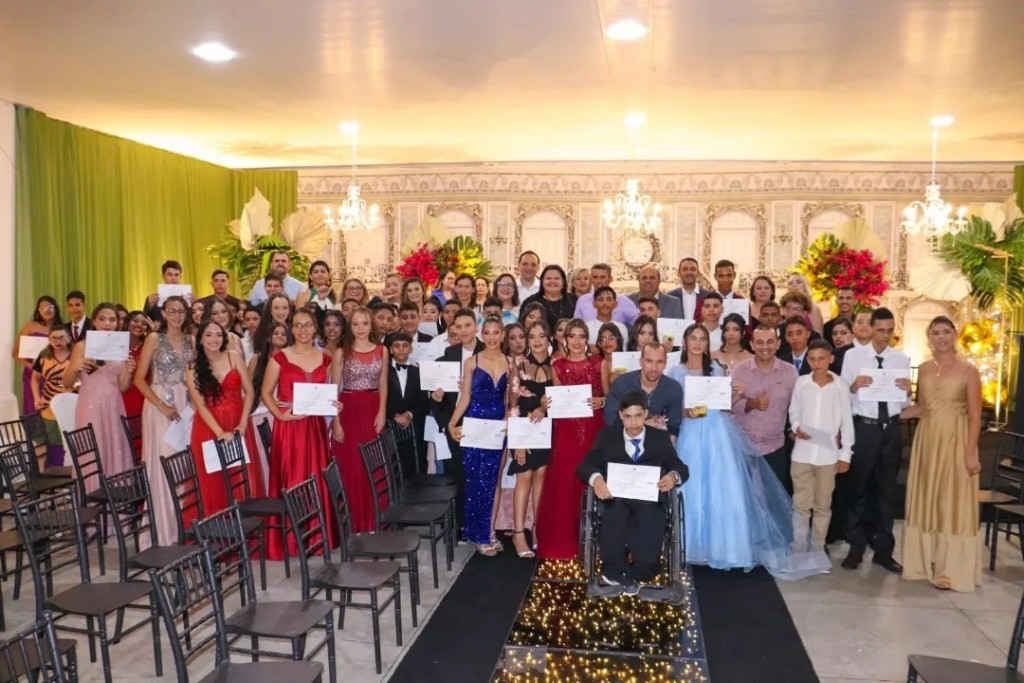 As turmas dos 9º anos da escola municipal Carlos Alberto Medeiros Duarte Sobreira concluíram a etapa dos anos finais do ensino fundamental com uma cerimônia no salão da AABB, na quarta-feira (13). Após a cerimônia, formandos, pais, professores, colaboradores da escola e demais familiares confraternizaram-se numa belíssima festa no local.