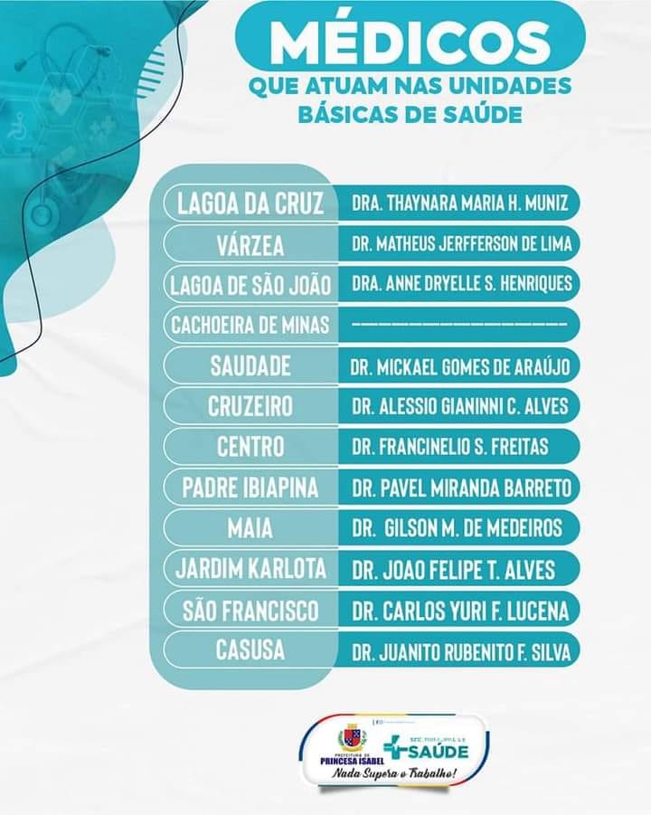 Confira os médicos que atuam nas nossas Unidades Básicas de Saúde!