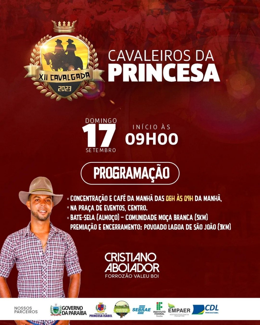 Está chegando o dia de mais uma edição da Cavalgada Cavaleiros da Princesa! A prefeitura de Princesa Isabel patrocina mais uma vez o evento que completa 12 anos de tradição!